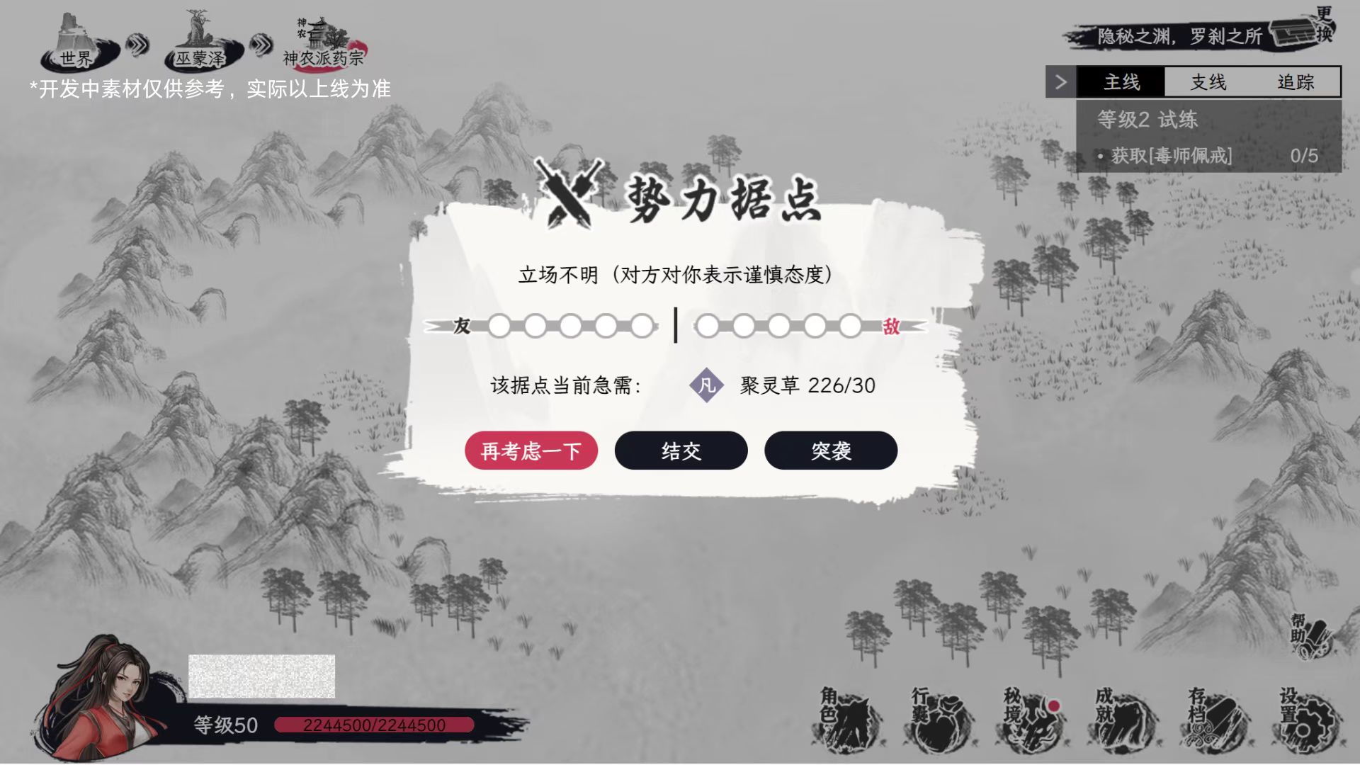 全作共设八个主线章节,各章独立成篇又伏有暗线勾连,构成严密的叙事网络。当前版本已开放前两章内容,完整剧情需待游戏正式上线后方可解锁。职业路径选择(如剑客、医者、术士、游侠等)将直接影响可触发的主线走向、支线事件及关键NPC互动逻辑。世界采用半开放结构设计:玩家既可按主线节奏稳步成长,亦可自由漫游山川市井,在探索中积累阅历、提升技艺,并自然触发大量隐藏事件——这些碎片化叙事往往藏于茶馆闲谈、驿站密信、古籍残卷之中,不刻意标注,却真实存在。