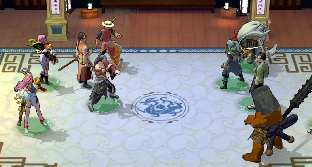 美术层面,《武道风云》采用写意水墨国风为视觉基调,从人物服饰纹样、兵器造型到招式轨迹,均严格考据近代武术文献与影像资料。战斗中强调“闪避时机”“攻防转换”“劲力传导”等真实技击逻辑,配合行云流水的招式衔接与富有呼吸感的节奏设计,高度还原传统武术竞技中的技术张力与美学韵律。