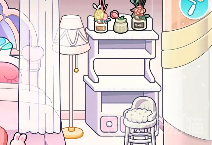 第五步:延伸个性化表达。可在地面铺设圆形绒面粉色地毯,墙面悬挂卡通化公主主题挂画,或于窗台添置毛绒玩偶摆件。所有延伸装饰均基于玩家自主选择,不改变主体配色体系(主色:粉色;辅色:白色)与风格定位(可爱、梦幻、少女向)。