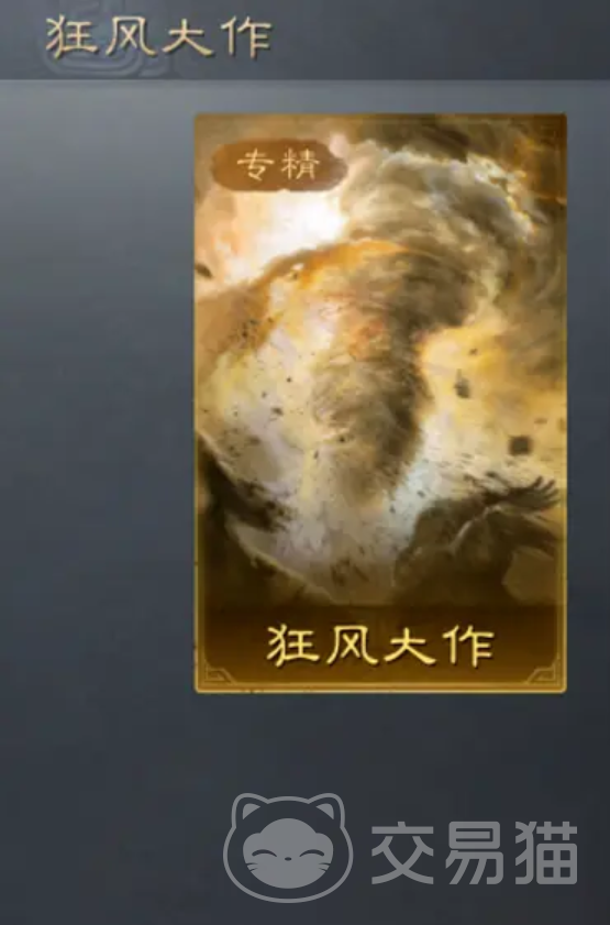 【伐谋】分支解锁战法“狂风大作”:在第1、3、5回合自身行动时,敌我双方全体进入“风暴”状态;奇数回合自身行动时,有60%概率对敌军全体施加“火攻”,造成50%–100%谋略伤害;偶数回合自身行动时,则有60%概率对敌军单体施加持续2回合的“火攻”,并附加140%–280%谋略伤害。