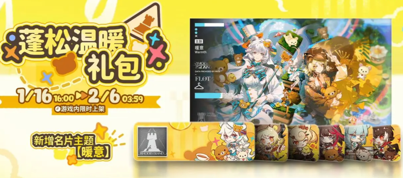 此次《明日方舟》与轻松小熊的跨界联动,不仅延续了IP一贯的柔和治愈调性,更通过多样化的内容形式强化游戏内的生活化叙事。活动时间为1月16日至2月6日,所有联动道具、家具及时装均严格遵循上述时间节点开放,请玩家留意版本更新公告,及时参与活动流程。