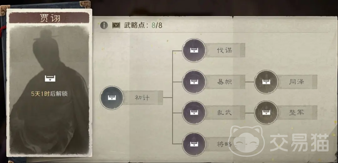 在“弈定江淮”剧本中,贾诩可习得专属天赋并解锁战法【影·折冲御悔】:战斗前3回合,使我军随机2名成员减伤12%至24%;第4回合起,为全体己方单位提供兵力回复,治疗率区间为180%–360%,数值随自身智力属性动态浮动,凸显其作为高智辅将的战略纵深价值。
