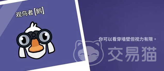 观鸟者:开启观察技能后视野呈扇形穿透墙壁,可视范围收窄但获得隔墙透视能力。该机制适用于定点监控关键区域(如破坏点、会议入口),尤其利于预判鸭子动向与埋伏时机,是防守型战术中的关键侦察单位。