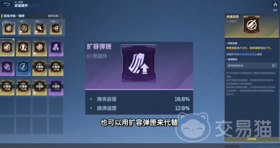 二号插件选用【扩容插件】:直接提升弹匣容量,降低单位时间内的换弹频次。在持续推进、据点争夺等中高频交火场景中,该插件可保障乘风快递维持稳定的火力压制强度,延长单次装填后的有效作战时长。