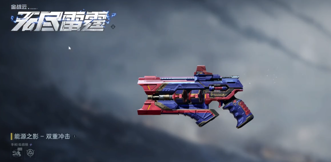 金战云·无尽雷霆皮肤以暗金为主视觉基调,摒弃浮华亮金,强调金属质感的沉稳与威压。机身表面蚀刻雷纹浮雕,淡紫色电离轨迹沿腿部关节与肩甲边缘精准延展,形成能量蓄积的视觉暗示。开火瞬间触发专属闪电特效——高压电弧缠绕弹道,炮口迸发时伴随瞬时强光与粒子扩散,显著提升攻击动作的戏剧性与战场统治力。