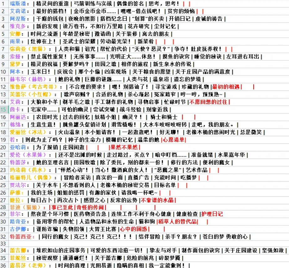 第一组线索:“精灵间的重逢”“弓箭训练与实战”“偶像的签名”“思考思考”,指向角色瑞斯潘;“最好的搭档”“金币金币金币”“嘿嘿~借点钱吧”“贫穷的烦恼”对应艾莉诺;“读万卷书,不如行万里路”“花卉研究”“尘封记忆”“新的发现”均指向维克多。