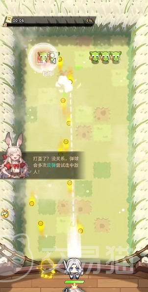 婕拉的核心输出依赖反弹球与大型球两类弹射单位。反弹球具备多次反射特性,可借助墙角实现多段折线打击,对障碍物同样触发反射判定,形成覆盖式范围伤害。该机制显著提升地图利用率,在敌人分布零散或地形复杂时仍能保持命中率,尤其适用于高机动性、低密度敌群的关卡环境。