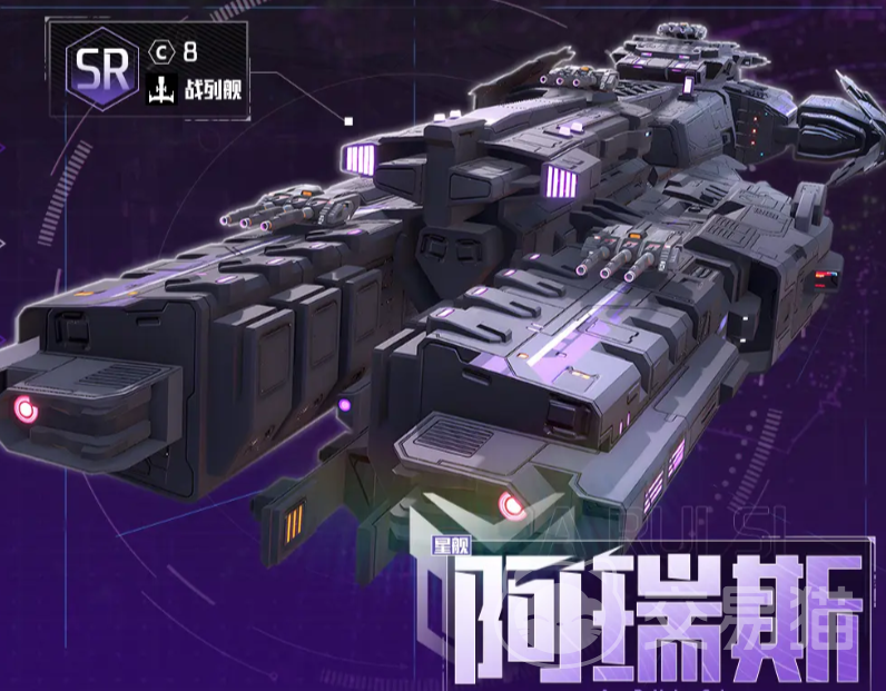 第二艘推荐为“阿瑞斯”战列舰,稀有度为SR。该舰虽归类为战列舰,但拥有更庞大舰体结构,原因在于搭载武器数量更多,且需承载高容量弹药储备,从而增强多场景适应能力。其入手门槛较低,培养资源投入需求温和。技能配置方面:“分裂子母弹”为主动单体技,造成557%-928%伤害,并有10%概率使目标在6秒内无法释放集气技能;“电磁屏障”提升15%免伤;“实弹防护”提升25%生命值;“灵活机动”则可在被泰坦单位攻击时降低25%所受伤害。