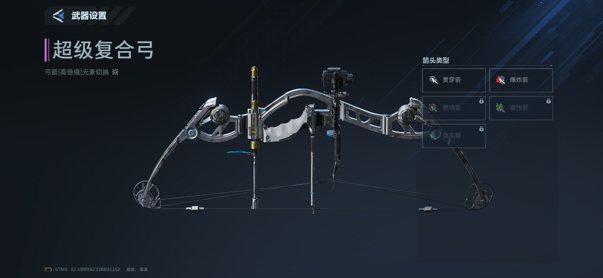 在深入配置前,需明确超级复合弓的基础特性:其主动技能可提升射击频率并激活备用弹药机制;被动效果则由所装配的箭头类型决定,而箭头需通过赛季商店获取,支持多套战术方案切换。此类模块化设计,是钢铁起源赛季中物理系武器的重要创新方向之一。