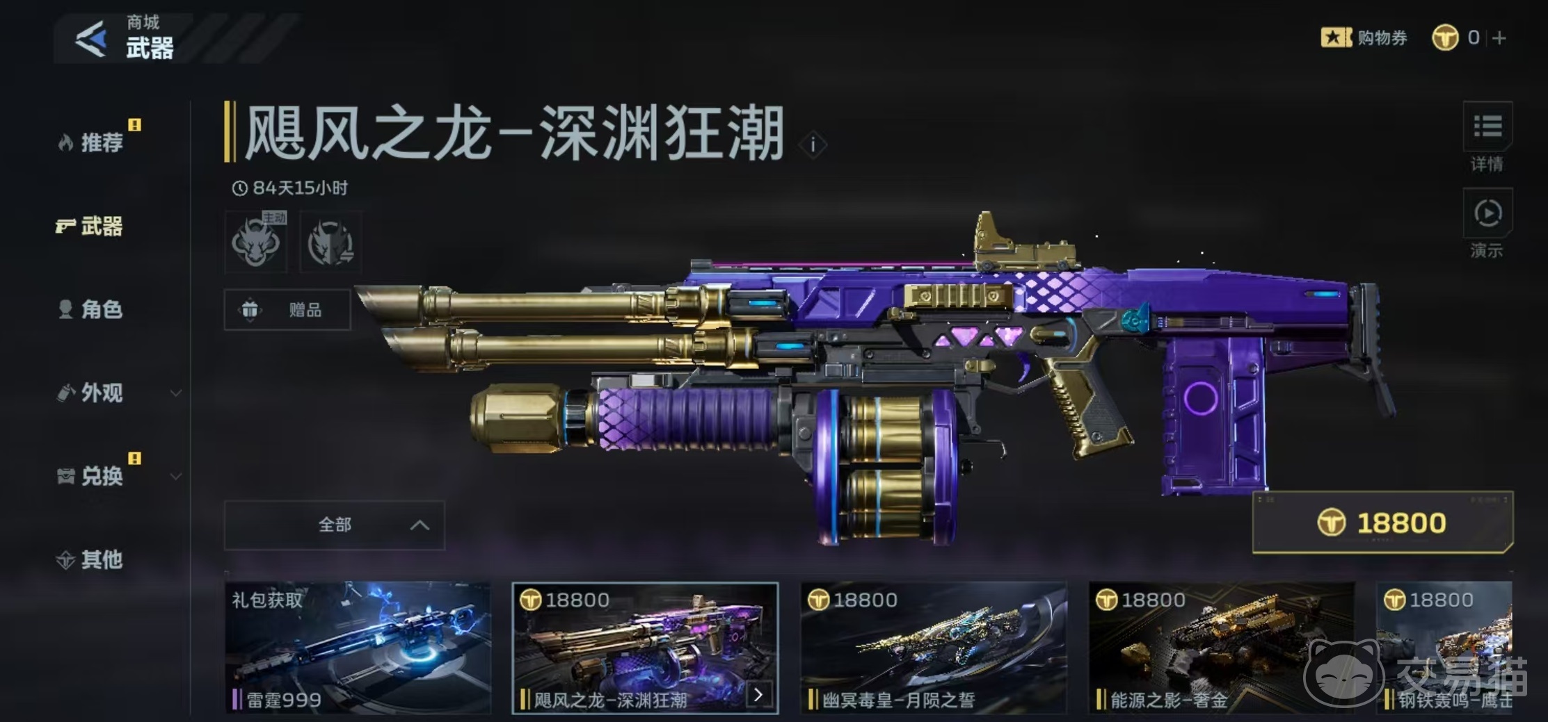 从性价比角度分析,一次性充值648元为当前最优选择:总计可得73688 NZ点,其中含8888点专属赠送额度。该档位足以覆盖多数高阶道具消费,例如售价18800 NZ点的传说武器礼包,内含飓风之龙、幽冥毒皇、能源之影等多款稀有武器及其专属皮肤。此类装备不仅视觉表现突出,更在模型特效、音效反馈及击中反馈层面进行了深度定制,提升实战沉浸感与操作辨识度。