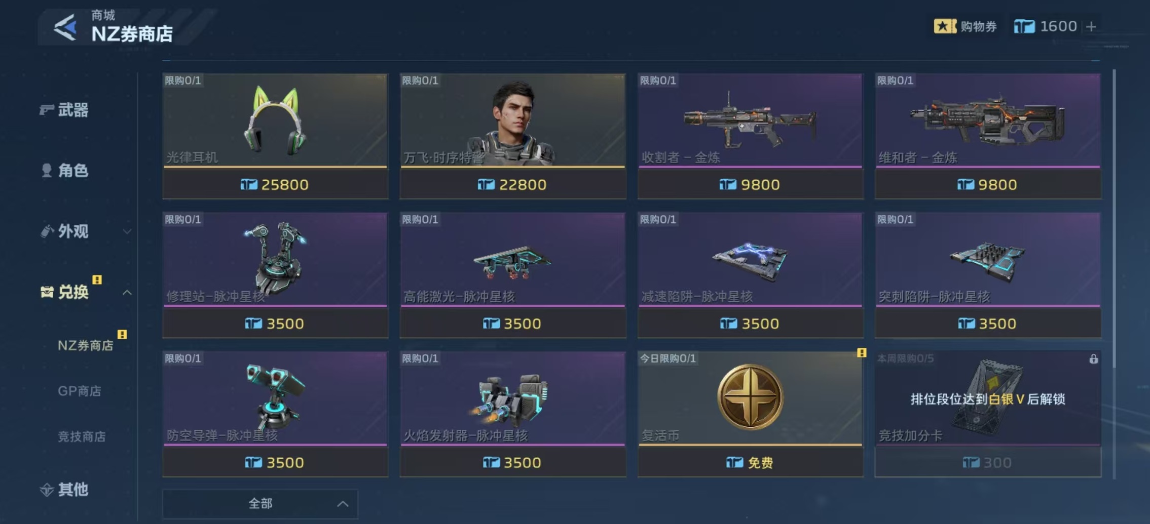 除武器类礼包外,NZ点还可用于角色商店中解锁多套角色外观套装,亦可兑换为NZ券,在NZ券专属商店中购置史诗级主武器、陷阱装饰、竞技加分卡及竞技保护卡等功能型道具。这些内容虽不影响基础战斗数值,但能有效优化排位赛体验节奏与容错空间,助力玩家更高效达成段位目标。