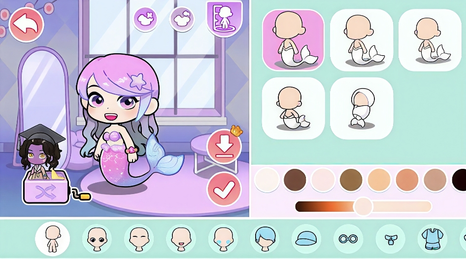 每个子场景均采用差异化美术设定与交互逻辑,玩家可深度定制人鱼角色的面部特征、鳞片纹理、尾鳍渐变等外观参数,并通过数百种服饰配件、动态表情库及肢体微动作系统,构建高度个性化的视觉表达。大量未公开的隐藏机制正等待玩家在反复探索中自主发现与验证。