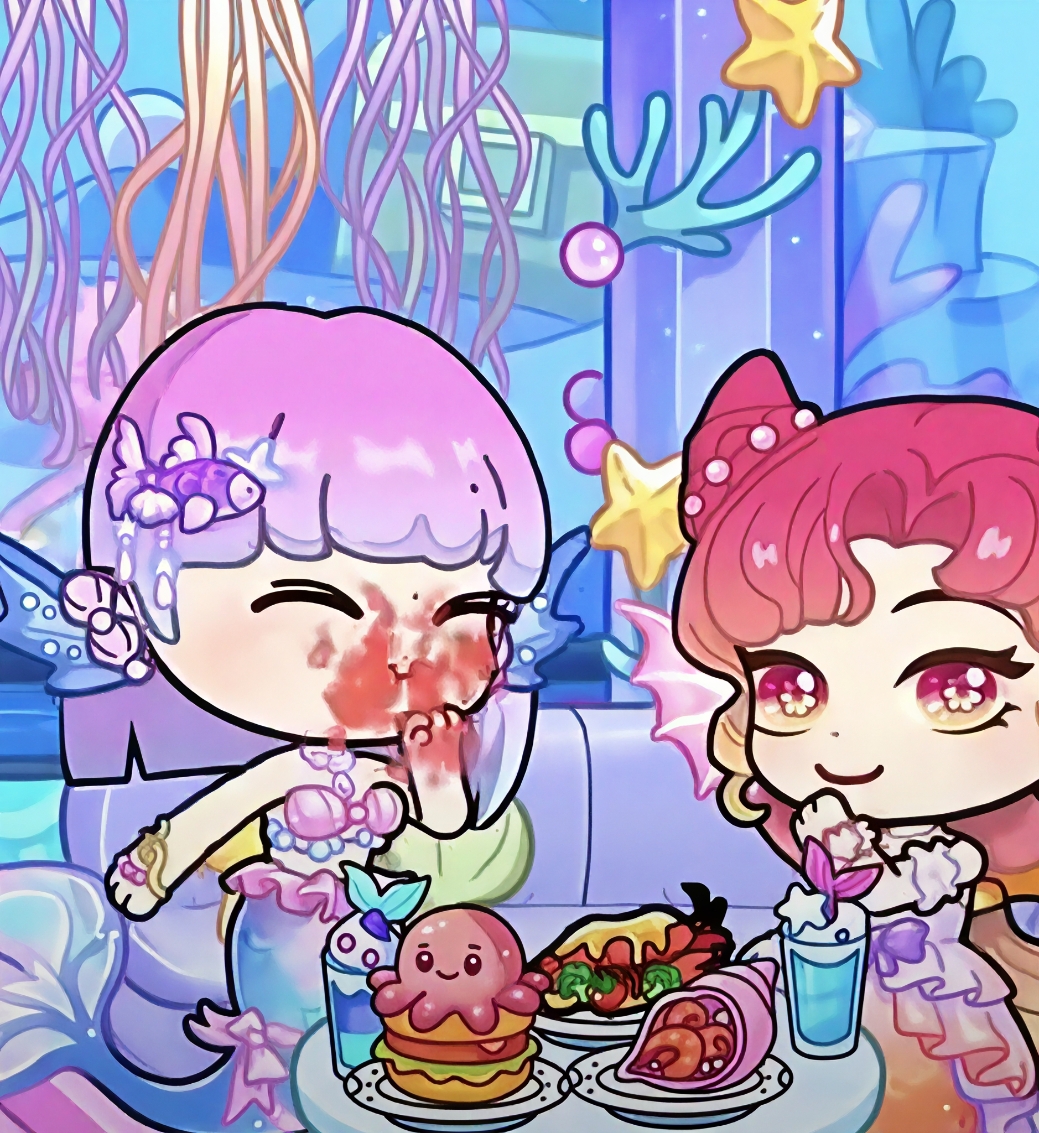 该区域精心规划了主题鲜明的多元子场景,涵盖美人鱼主题餐厅、珊瑚圣堂风格的美人教堂,以及在深海穹顶下举办的沉浸式派对空间。所有地点均通过界面图标直观呈现,点击即可瞬移进入;角色支持无拘束拖拽移动,实现全地图无缝漫游。此外,系统内置协作交互机制——两名玩家可通过同步动作触发专属剧情片段,例如共舞姿态、双人浮潜配合或镜像手势等动态演绎内容。