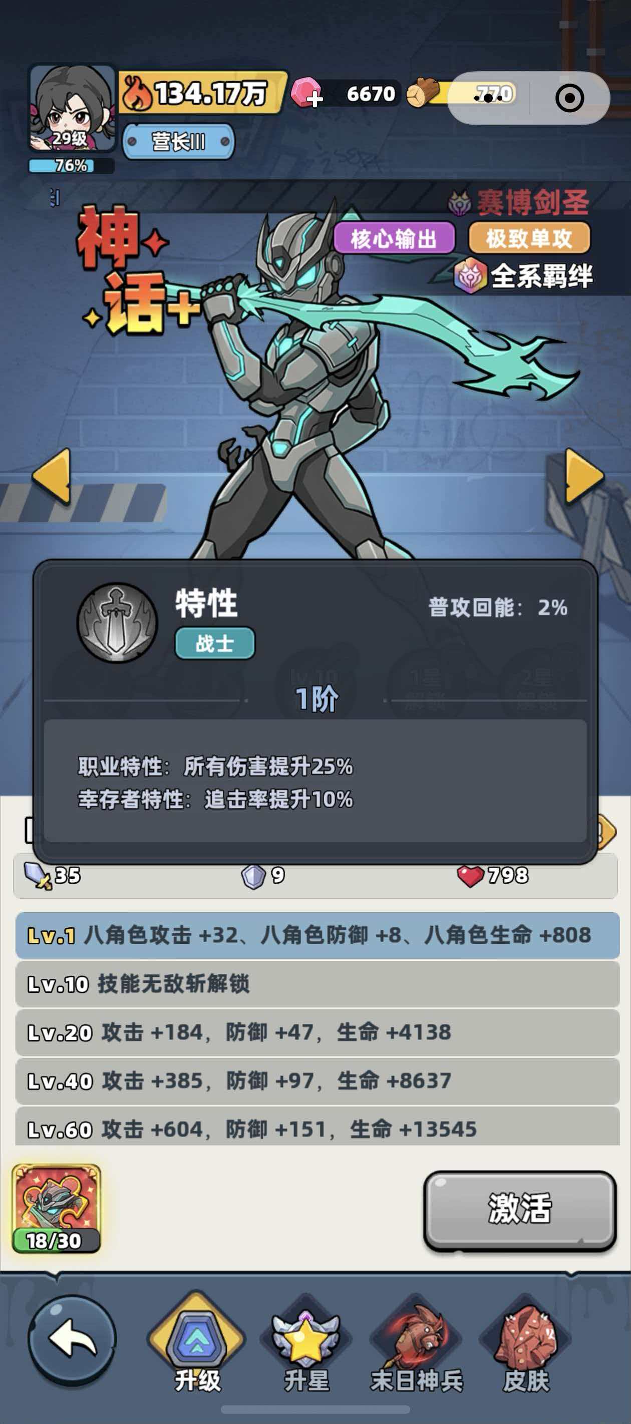 综上所述,赛博剑圣并非概念化标签角色,而是具备明确机制深度与实战上限的高阶输出单位。其强度表现高度依赖基础养成完成度,未达神话3星前难以体现设计初衷。玩家若计划长期投入该角色,务必前置规划资源分配,确保星级与追击率双达标,方能充分释放其战术潜力。