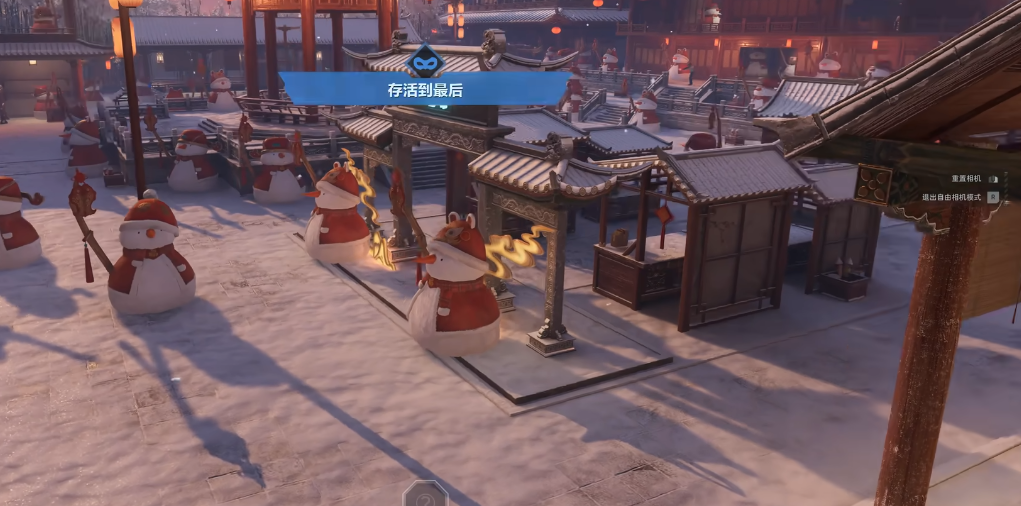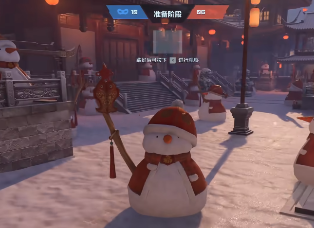 玩法采用四局制回合对抗机制。每局开始前系统随机分配角色:3名玩家担任“躲藏方”,1名玩家担任“追逐方”。躲藏方拥有30秒准备时间,在地图中选择掩体并完成拟态(雪人地图中化身为雪人,熊猫地图中化身为熊猫);追逐方需在3分钟倒计时内识别并击中所有伪装目标。胜负判定依据为单局内双方淘汰人数总和,淘汰数更高的一方获胜。
