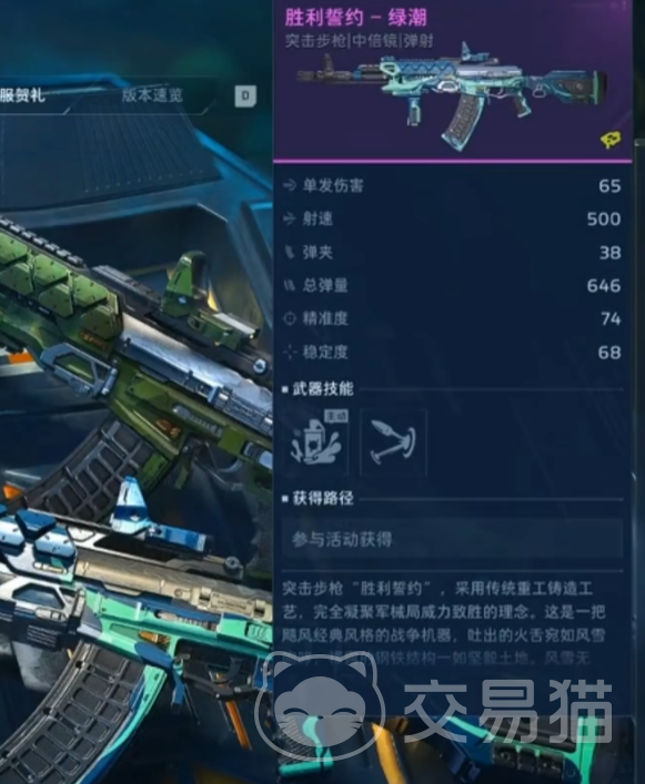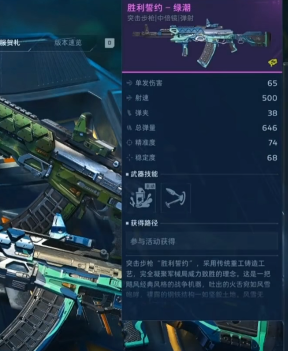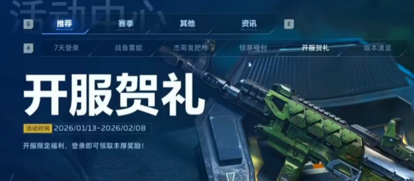 本次开服贺礼活动周期为1月13日至2月8日。活动首日登录即可领取紫色品质突击步枪——胜利誓约。该武器配备中倍光学瞄准镜,支持弹道预判与精准点射,基础伤害表现稳定;其主动技能可触发范围爆炸效果,适用于中近距离清场,有效应对集群敌人。