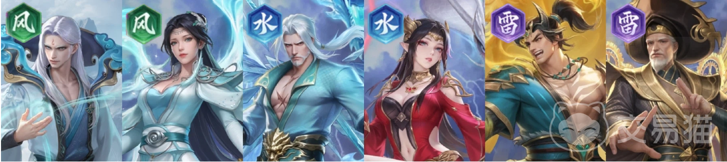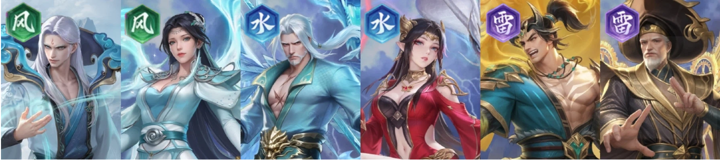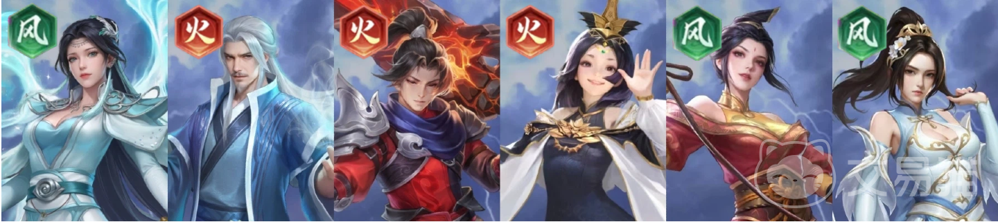 阵容配置:云韵 + 药老 + 两名火系角色 + 两名风系角色。