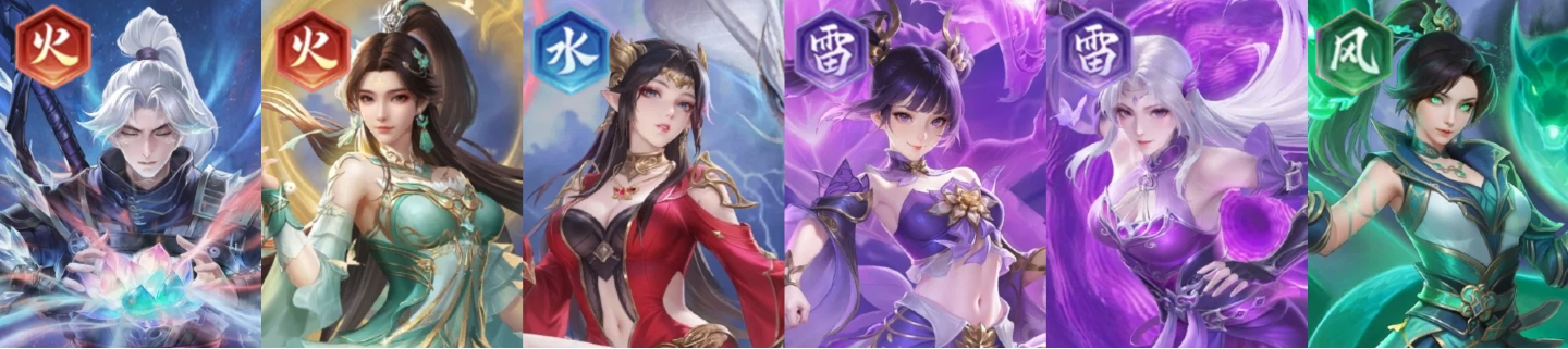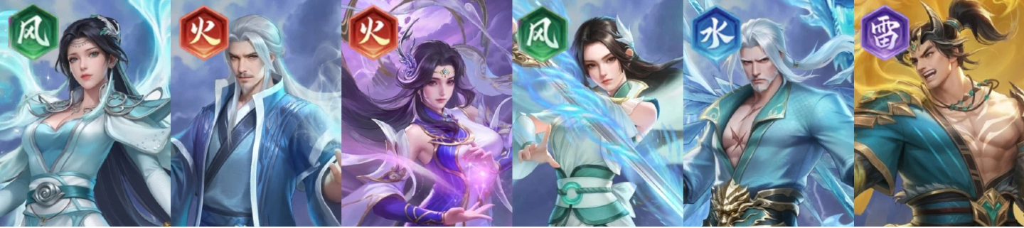 升级要点:延续开荒队逻辑,但以云韵替代林修崖担任收割位。云韵不仅具备同等击杀再动机制,基础属性与成长曲线也显著优于林修崖,单卡作战能力更强。火系与风系角色仍以触发“双源争锋”加成为主,无需刻意培养输出循环。此配置可稳定推进至主线第六章及以上关卡。