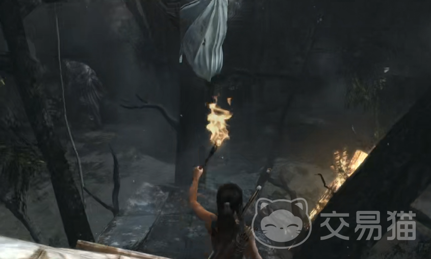 当其余立柱全部被点燃后,会发现角落尚存一根未燃立柱。此时需转向附近堆放的货物箱,跳跃登顶,再向上抓握横梁,摇晃使悬挂火盆坠落。火盆触地后引燃货堆,继而点燃内部预设导火细线,火势沿细线蔓延至最后一根立柱,完成最终引燃。随着整组结构连锁坍塌,飞机残骸顶部开启通路,玩家即可进入机舱内部搜寻最终宝藏。