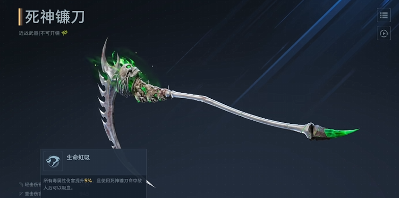 首推武器为死神镰刀,该武器具备高爆发伤害特性,有效攻击范围达3.1米,适用于多种战斗环境。每次命中目标后可触发吸血效果与减速效果,攻速间隔稳定为1.5秒,输出节奏紧凑。无论面对PVE副本Boss还是PVP对战对手,均展现出极强的泛用性。获取方式为通关指定副本并完成“黑暗复活节”剧情任务。