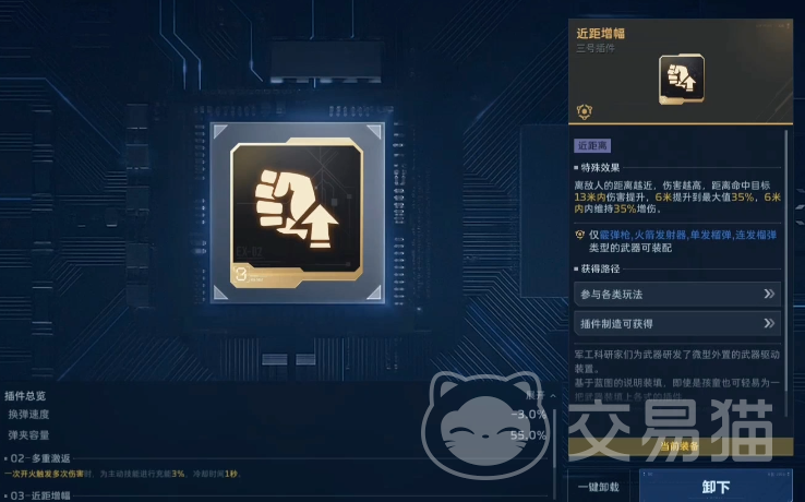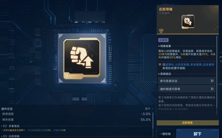 第三插件建议固定选用【近距增幅】,该效果与飓风之锤“破刃”机制形成高效叠加,近距离输出伤害获得质变提升,尤其适用于贴身缠斗与突袭斩杀场景。