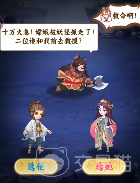 本作核心创新在于融合放置机制、策略卡牌构筑与轻度操作反馈三大模块,整体节奏偏重休闲体验。在当下高强度养成类游戏普遍存在的背景下,该设计有效降低了每日在线时长压力,更契合碎片化娱乐需求。剧情开篇颇具反差感:玩家接到紧急通报——嫦娥仙子遭妖物掳走,而传讯者竟是黑熊精。随后需在两位初始可选天命人之间做出抉择,二者基础战力均衡,风格略有差异,玩家可根据偏好自由选定。