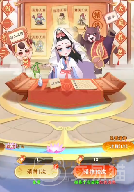 自第四关起,敌方阵容开始轮换,后续每隔数关便会引入新类型敌人,种类变化规律清晰。若战力未达碾压层级,需结合敌方技能机制调整应对策略,例如预判群体技释放时机、合理分配控制链等。请神系统是本作重要角色获取途径,功能定位等同于传统抽卡机制,需消耗“请神卷”进行召唤。该系统解锁时赠送一次免费抽取,且 guaranteed 获得一名紫色品质角色。