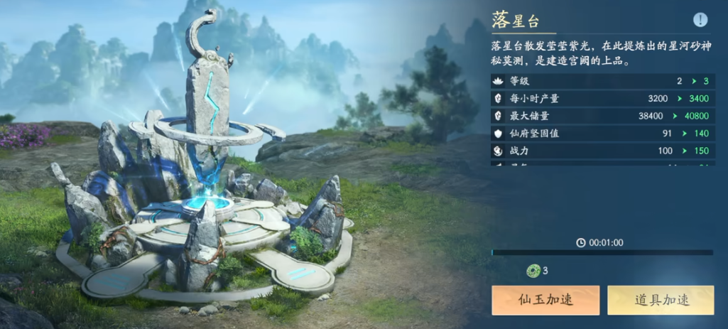 综上所述,落星台并非单纯的功能性建筑,而是连接角色历练、资源采集与装备锻造三大系统的中枢节点。其产出的星砂石,是中后期武器迭代与战力跃迁不可或缺的战略物资。玩家需统筹全局,在历练等级、主殿建设、配套资源点升级之间建立动态平衡,方能保障星砂石供给稳定,支撑修仙之路持续进阶。