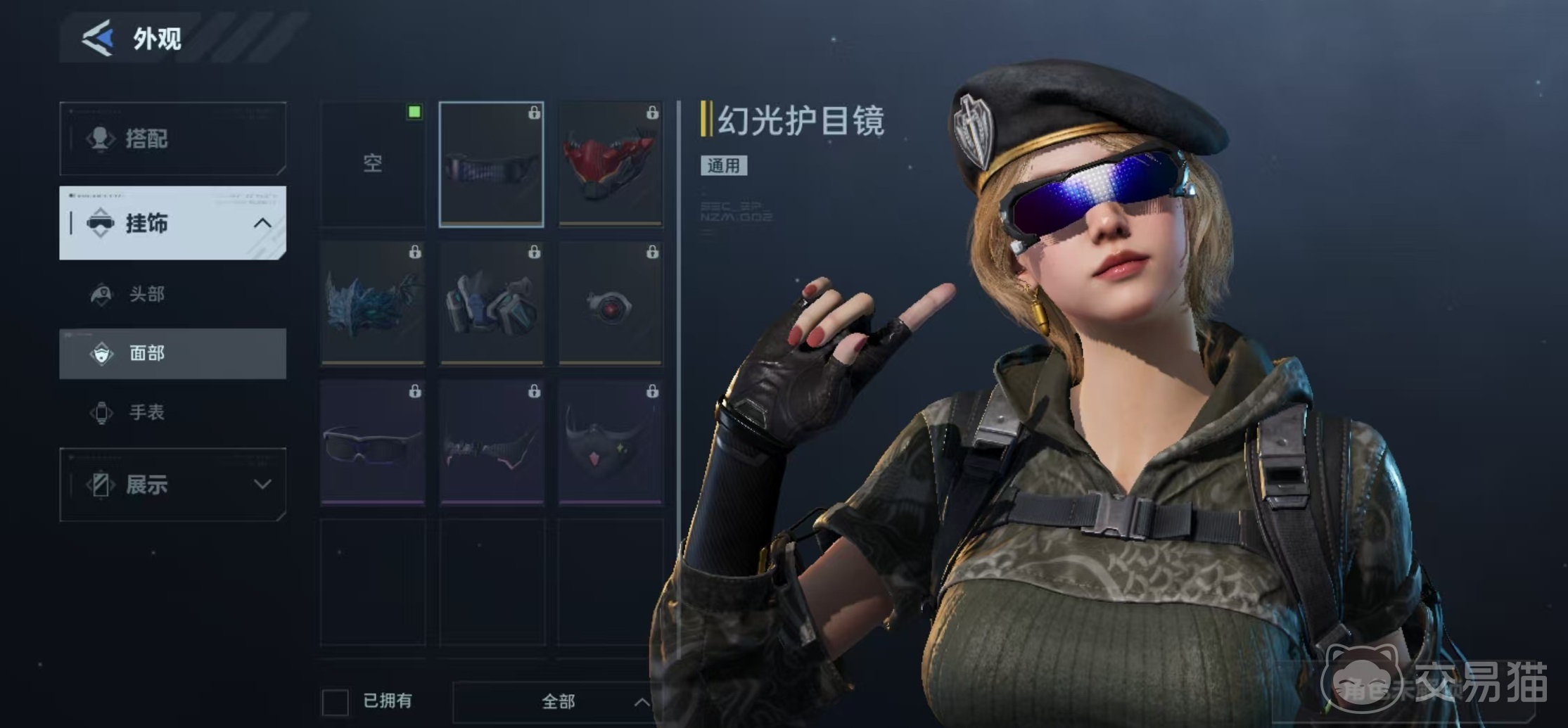 皮肤实装后,角色将呈现标准战术迷彩制服造型,配合标志性金色短发与冷峻神态,突出其教官级战斗素养与近身格斗专精设定。此外,该角色支持个性化外观拓展:已拥有的挂饰可自由装配于角色模型上;同时兼容相位面甲、幻光护目镜等视觉配件,实现多维度形象定制。
