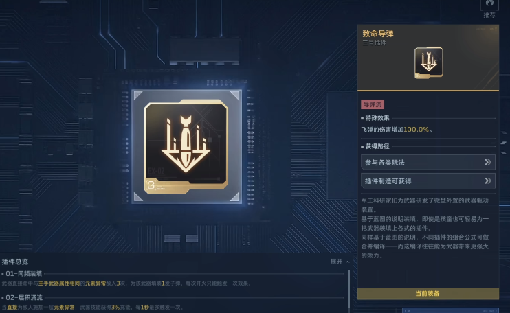 实战配置需遵循双重适配原则:其一匹配武器物理特性(如狙击枪优先选择稳定性强化插件,冲锋枪侧重射速与机动性插件);其二响应实时战局需求。当遭遇连续小怪波次时,“扩容弹匣+快速装填”组合可维持12秒以上持续火力压制;而在Boss战中,“雷击序列模组+闪身插件”则能同步达成位移规避、群体控场与持续伤害三重目标。