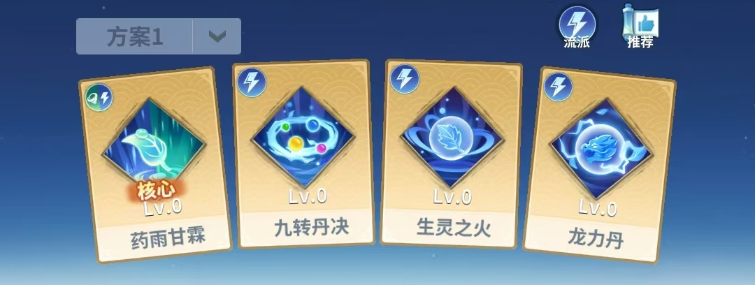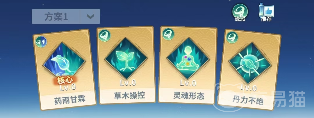 配置解析:构建全维度治疗覆盖体系。【药雨甘霖】提供紧急抬血与群体回复,【草木操控】赋予减伤增益并延长团队生存窗口,【灵魂形态】增强持续治疗稳定性,【丹力不绝】确保资源续航。四者协同可支撑长时间高强度作战,尤其适配持久战与高压力副本。