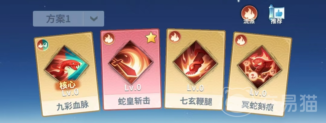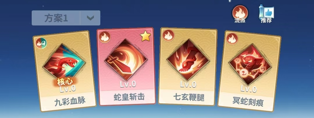 配置解析:突出高机动性下的精准打击能力。【蛇皇斩击】与【七玄鞭腿】构成连招爆发基底,【冥蛇刻痕】强化终结阶段伤害密度,【九彩血脉】同步提供攻速加成与普攻回血,使角色在切入后排后兼具输出效率与自我维生能力。适用于快速击杀敌方核心输出单位的战术目标。
