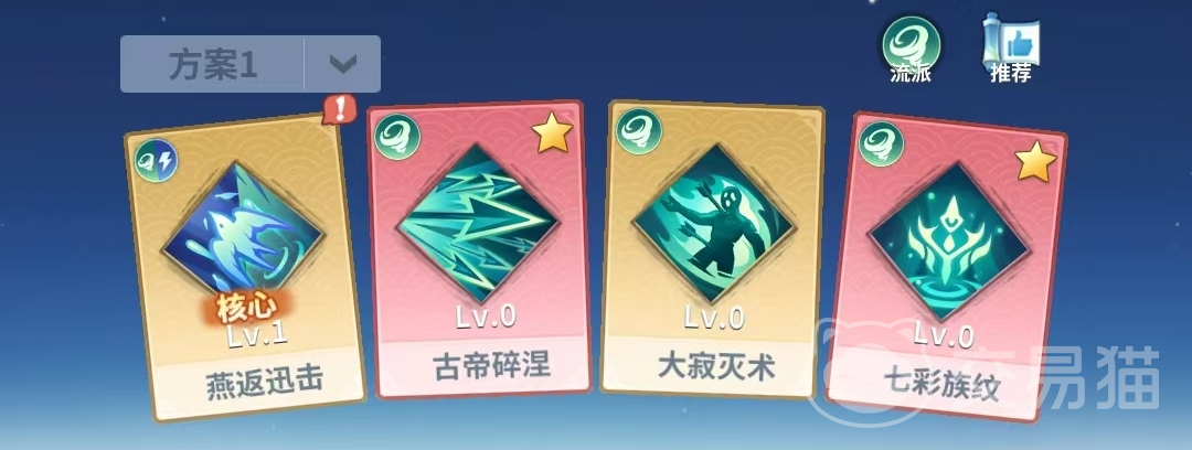 配置解析:专注针对高护甲精英目标的速杀体系。【古帝碎涅】无视防御并附加攻速标记,【七彩族纹】锁定标记目标且普攻减免35%防御,二者构成核心增益链;【大寂灭术】在开局释放减半版【古帝碎涅】,加速标记叠加上限;【燕返迅击】补充主动技能空档并提升常态攻速。适用于Boss战或限时挑战类内容。