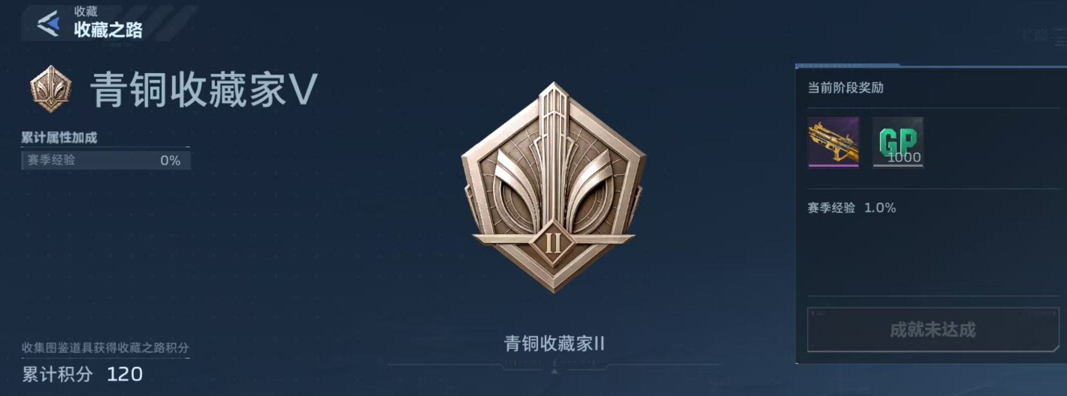 每获得一件永久归属的物品,均可按其品质折算为对应积分:金色品质武器计20分,紫色品质计10分,蓝色品质计5分。积分累计达到指定阈值后,即可晋升收藏家等级。例如,达成青铜收藏家四级可领取GP点与NZ卷;升至二级时,将解锁限定外观武器——黄金Z型步枪。