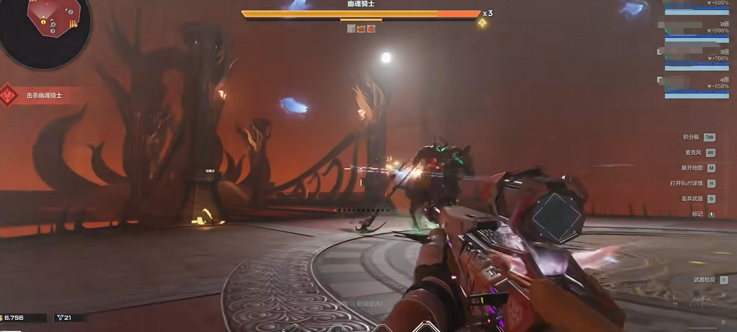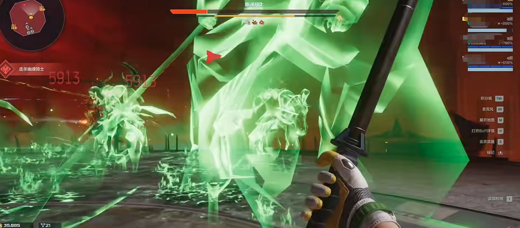 血量低于临界值后,幽魂骑士将浮现红色虚影并发动大刀斩击,该技能具备全屏高伤特性,不可格挡且判定范围极广。务必全员立即撤离至安全距离,待虚影消散、Boss恢复常态后再重新接战。实测表明,集中火力瞄准其头部区域进行扫射,可显著提升击杀效率。