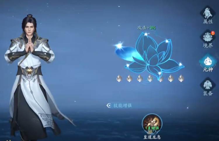 元神每次成功升阶后,角色立绘中的莲花图腾将点亮对应神力纹路;达成特定星级后,自动解锁新技能栏位。星级越高,解锁的被动技能数量越多,且技能效果覆盖暴击率、灵力回复、抗性增幅等实战维度,显著提升PVE与PVP场景下的持续作战能力。