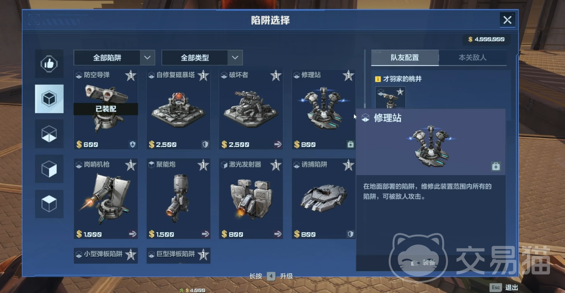 武器配置需紧扣地图特性:主武器优先选用高覆盖率的范围型装备,例如飓风之龙、幽冥毒王,以应对密集涌来的敌群;副武器推荐尖刺或复合弓,兼顾精准补刀与资源控制。陷阱组合须覆盖多维防御需求——自修复磁暴塔为必选核心,破坏者与激光发射器构成中坚火力,同时需备齐大型与小型弹板陷阱,以便在不同地形结构(如地面通道、台面平台、垂直墙面)灵活部署。