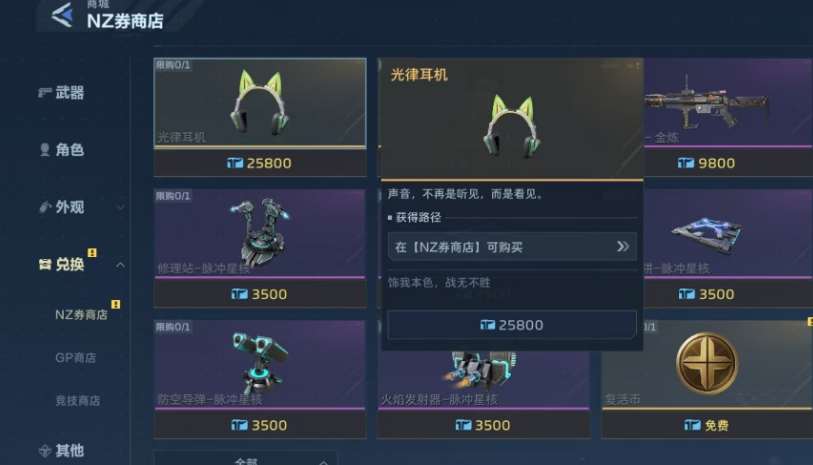 商城是外观获取的核心渠道之一。进入主界面后,依次点击【商城】→【角色】,可浏览含角色本体及附赠外观的限定礼包;部分礼包内含面部装饰、头部装饰等挂饰道具,实现角色与外观同步解锁。此外,在【外观】分类页中设有专属外观礼包,内容明确标注所含部件类型与数量;【兑换】页中的NZ商店则支持使用指定货币兑换光律耳机等高人气外观装备。