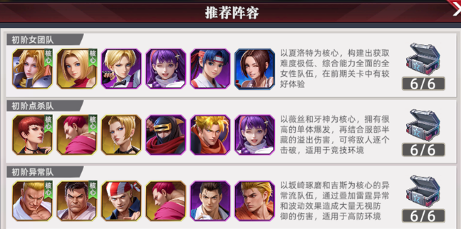 英雄按职能划分为四大职业:攻击型、防御型、突袭型与辅助型。攻击型英雄侧重范围输出,如草薙京凭借全体伤害配合燃烧效果实现持续压制;夏洛特则以高频连段快速削减敌方血量。防御型英雄承担承伤职责,玛丽可通过伤害分摊机制强化团队生存能力。突袭型英雄专注精准打击,八神庵具备瞬时爆发能力,可优先清除敌方关键单位;特瑞则在战斗后期发挥收割优势。辅助型英雄则主导节奏调控与增益覆盖,是阵容协同运转的中枢。