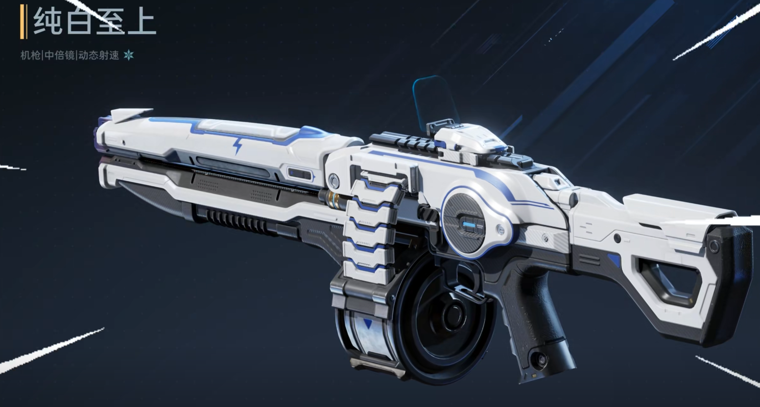 “纯白至上”定位为均衡型成长向机枪,弹匣容量处于标准区间。其被动效果支持持续射击过程中逐步提升射速,越战越快,适用于清理密集小怪群;主动技能开启后同步提供减伤与增伤双重增益,在Boss战中可支撑近身高强度输出,容错空间充足。该武器无需充值,仅通过常规副本刷取即可获得,若搭配扩容插件与增伤插件,整体作战效能将进一步跃升。