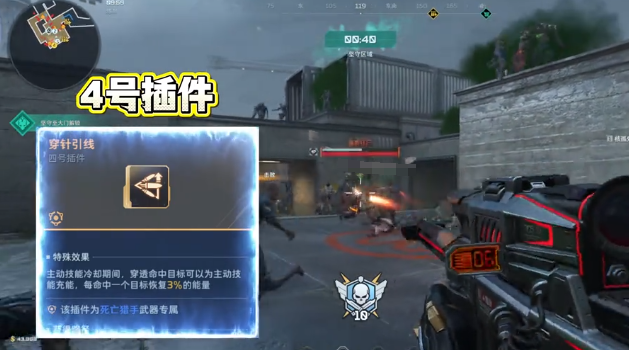 四号插件需结合副武器动态适配:若副武器为振弦,优先选用“穿针引线”,进一步压缩技能冷却时间;若使用复合弓,则切换为“杀戮连锁”,利用其连锁伤害机制弥补单点爆发不足。副武器本身亦是体系关键——振弦不仅提升暴击率,更同步增强暴击伤害,与死亡猎手的高暴击特性高度契合,实现“枪枪暴击、刀刀破防”的压制效果;搭配狂暴装填后,子弹再生与技能释放节奏更加紧密咬合。