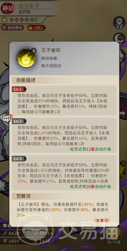 综合来看,白马王子属于典型的高策略性培养对象。其多层级技能演化路径、站位敏感型伤害机制、以及【战意】—剑阵—驱散的闭环联动设计,使其在中后期阵容构建中具备不可替代的战术定位。尽管各星级阶段的操作门槛存在差异,但只要准确把握其“同列响应”“层数转化”“濒危爆发”三大核心机制,即可稳定发挥其作为主力蛇灵的完整潜力。
