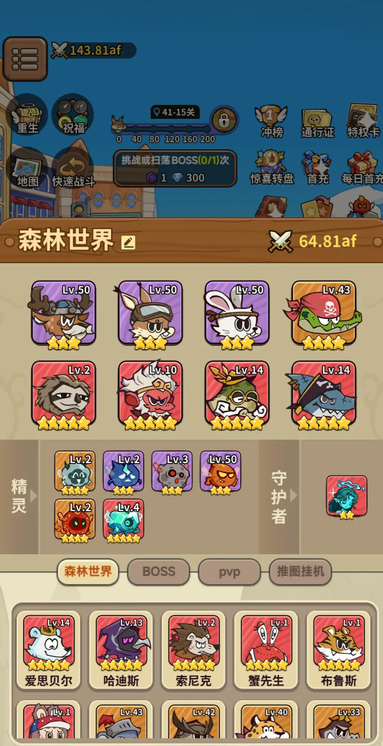 开启Boss副本挑战前,需完成前置关卡——即通关至第65关。此阶段不仅是资源获取起点,更是阵容验证期。推荐初始输出组合为粉红豹、潘达、老虎、鲨鱼与哈基米。该配置兼顾爆发、续航与团队增益,在中期过渡阶段表现稳定,能最大化激活协同效果。