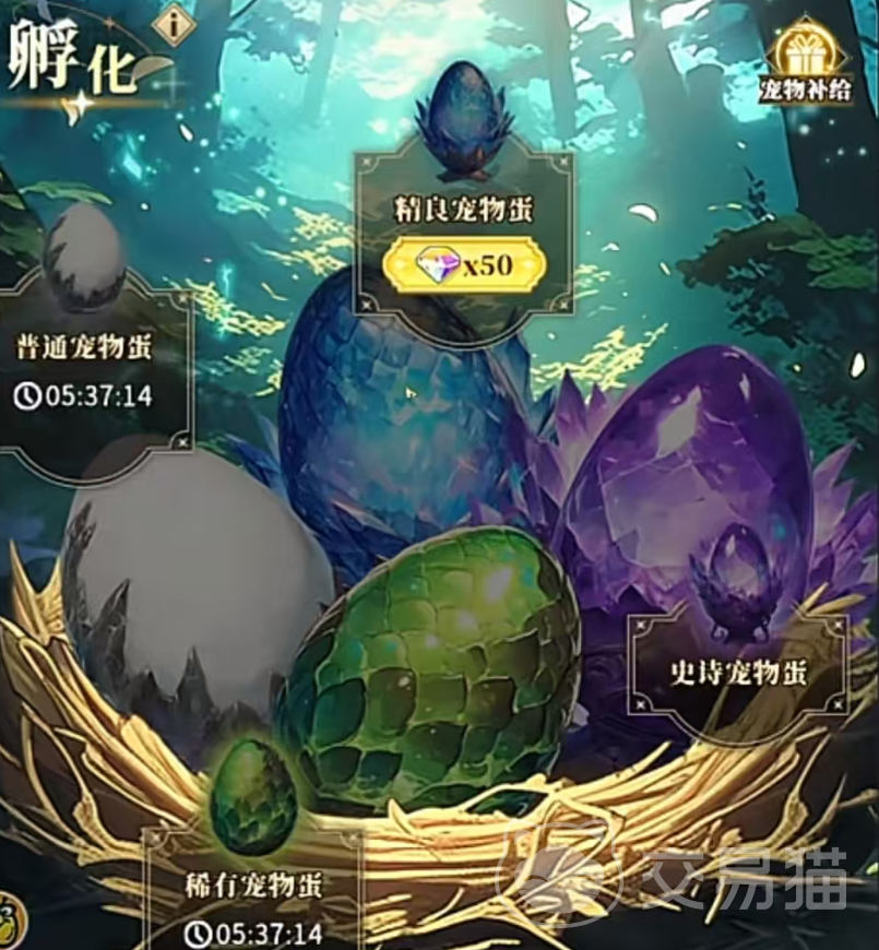 宠物系统入口位于主界面底部城堡图标处,点击即可进入。该功能需满足前置条件——玩家当前所处战区必须已解锁,系统才会同步开放。整个玩法以“孵蛋”为起点,通过抽取获得初始宠物卡牌;卡牌按品质划分为白、绿、蓝、紫、金、红、彩七个等级,不同孵化池对应不同基础品质产出概率。低阶宠物可通过融合方式进行品质跃迁,形成阶梯式成长路径。