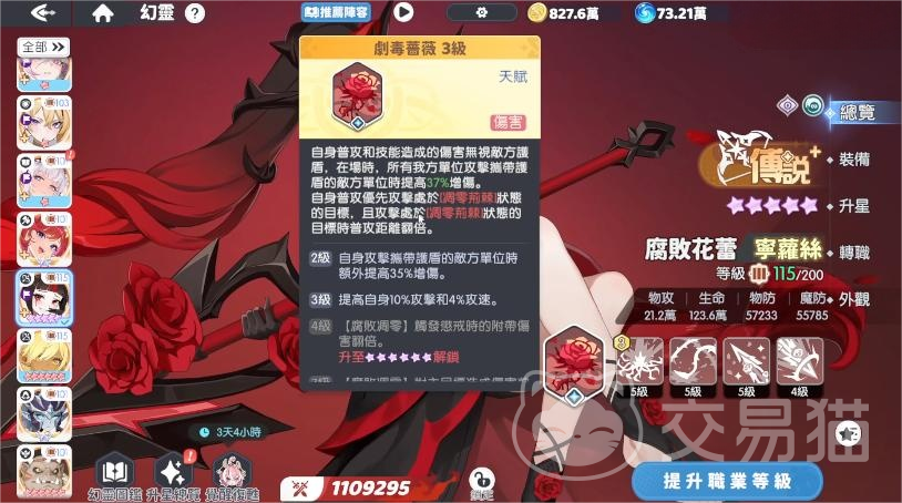 主动技能【剧毒蔷薇】对携带护盾目标额外提升37%伤害,并附加持续状态效果;若目标已处于其他负面状态,则本次伤害将触发翻倍增益,形成深度穿透打击。该技能的伤害穿透效率随角色星级提升而线性增强,进一步放大其成长上限与后期强度。