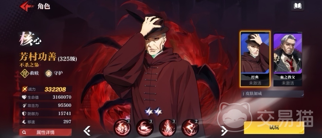 芳村功善则是团队生存体系的关键支点,集吸血、群体眩晕与复活三大核心能力于一体。当自身血量濒临危险阈值且怒气值达到100%时,自动触发【赫者形态】:攻击力提升80%,普攻转为附带50%眩晕率的范围伤害;此时释放技能【枭爪】,将以1.5倍基础伤害直线轰击地面,同时附加击倒效果。更值得注意的是,若在该形态下被击杀,将立即满血复活并获得一次额外大招释放机会,极大增强容错率与翻盘潜力。