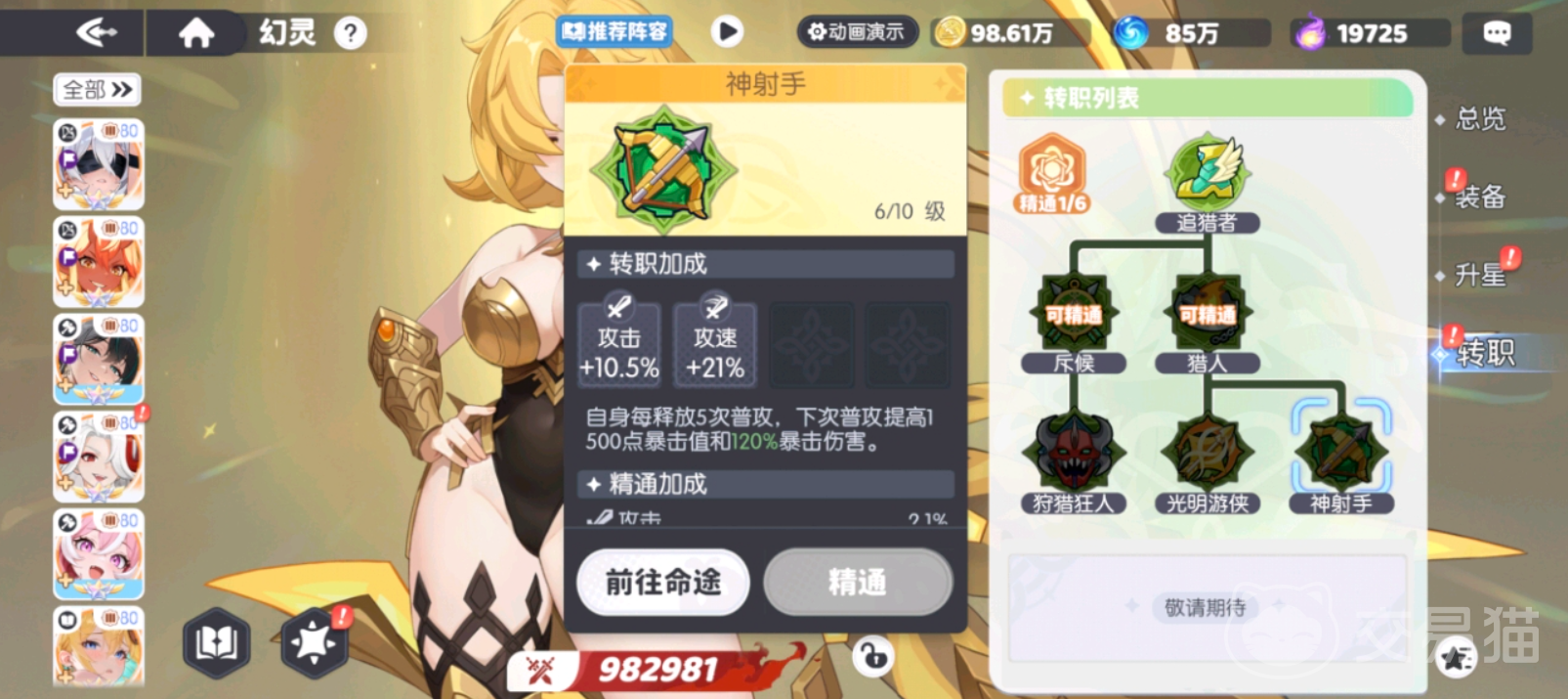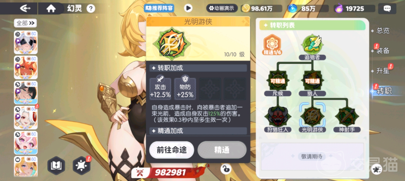 目前阿波罗可选的三条转职分支分别为:神射手、狩猎狂人与光明游侠。三者分属不同职业体系,机制侧重差异明显,适用于不同战斗场景与队伍配置需求。以下将逐一说明各路线的核心属性加成与技能机制。