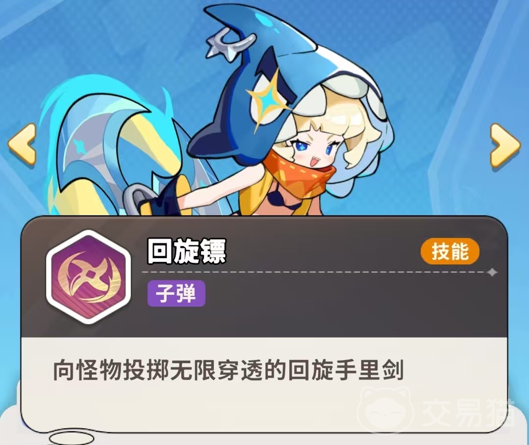 忍者鲨手隶属于射手职业,核心定位为远程持续压制单位。其攻击机制具备距离增益特性:与目标间距越大,单次伤害越高。主动技能“回旋镖”可投掷无限穿透的回旋手里剑,对路径上全部敌人造成伤害,因此在怪物密度较高的关卡中,该技能的群体清场效率尤为显著。