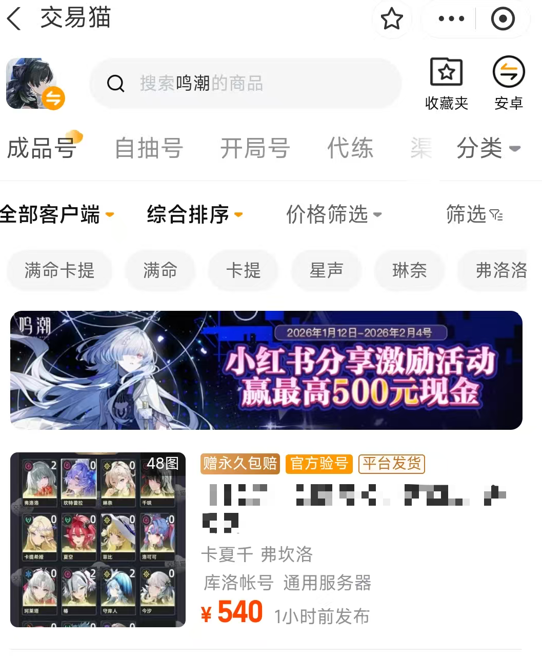 最后就是游戏平台内拥有大量的成品号,这些成品号都是真实可靠的,而且价格方面都在合理区间,如果玩家们还是不太信任的话,可以在平台内多逛逛,基本上能了解游戏的市场行情哦。