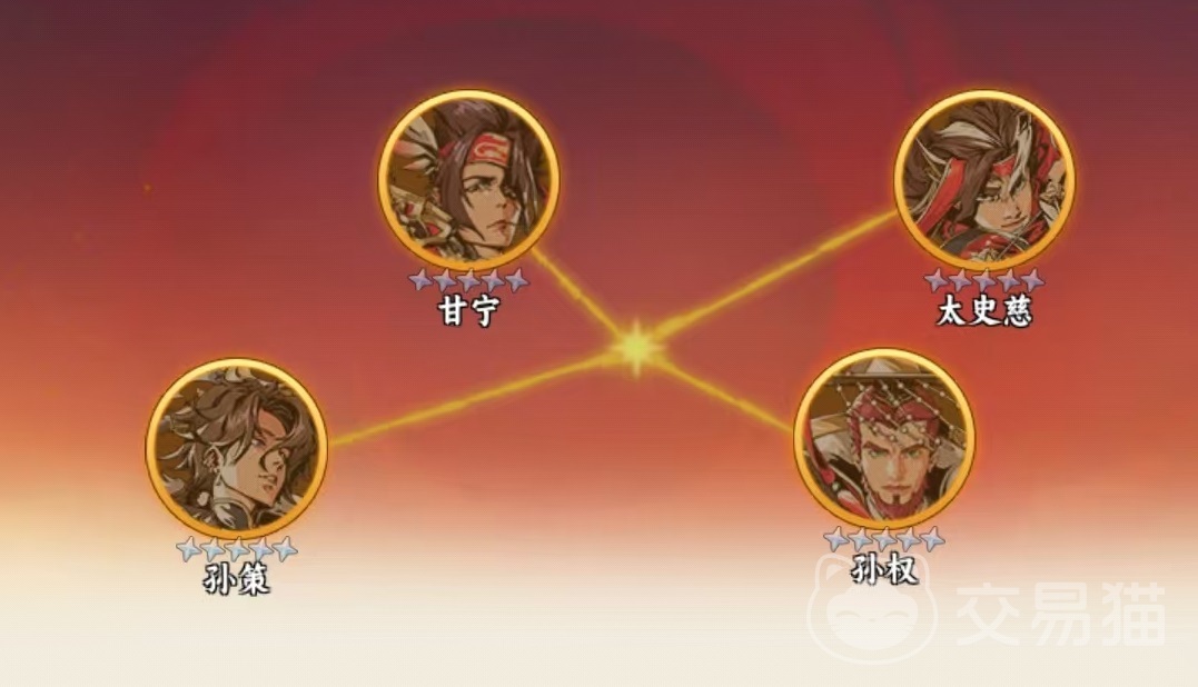 阵容构建方面,优先围绕“制霸江东”羁绊展开:孙权需与孙策、甘宁、太史慈共同上阵,达成四人组合。该羁绊生效后,前两回合全体暴击率提升;孙策首动触发“小霸王”效果;每回合开始时四人各叠加1层“制霸”状态,同步提供增伤与减伤双重属性加成,实现攻防一体的全局强化。另一重要羁绊“关东诸侯”建议同步激活,推荐配置为曹操、刘备、袁绍三人。该组合开场即为全体友军附加“同辉”效果,提升伤害输出;且只要曹操存活,每回合均可对敌方施加“压制”,削弱其受到的治疗效果,形成有效反制。